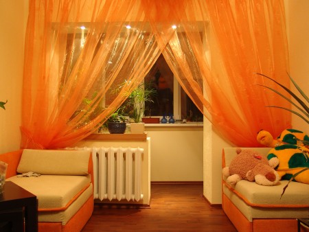 Классические портьерные ткани - это шелк, бархат, хлопок, шерсть, парча. В любом случае, необходимо брать ткань, подходящую для окон по фактуре, образующую красивые складки, интересно реагирующую на свет. Портьерные ткани, как и ткани другого назначения, различаются по виду, обработке, функциям. Правильный выбор штор - это важный момент дизайна интерьера. Слишком "тяжелые", классические или наоборот легкомысленные шторы могут сделать комнату визуально меньше, мрачнее, скучнее или просто войти в диссонанс с остальной обстановкой помещения. Обрабатывают ткани для штор по-разному. Рассмотрим эти технологии. Кружевная ткань - изготавливается вручную или на специальной швейной машине и представляет собой легкое сетчатое полотно из сплетенных нитей. Популярная портьерная ткань, удачно вписывающаяся практически в любое помещение. Батик - это ручная роспись ткани красками. Способы росписи могут быть очень разнообразными. На те участки ткани, которые не должны подвергаться окрашиванию, наносят специальный состав, в основном на основе воска. В батике используют только натуральные портьерные ткани, которые хорошо окрашиваются: шелк, хлопок и т.д. Икат - очень сложная разновидность обработки ткани краской и получения своеобразных, размытых узоров. Также как и батик делается вручную, поэтому ткань для штор в стиле "икат" является одной из самых дорогих в мире. Шерстяная вышивка - такой способ декорирования можно найти на некоторых видах портьерных тканей, покрывал. Осуществляется она, соответственно, шерстяной нитью по ткани. Теперь рассмотрим виды штор: Тюлевая штора - тюль в России принято вешать как основу под портьеру. Она делается из очень легкой, тонкой полупрозрачной ткани. Пойдут, например: кружева, вуаль, органза. Обычно тюль берут как одну большую штору и закрывают им окно полностью. Портьера всегда делается из плотной ткани и является основным элементом в декорировании окон. Ламбрекен - это ткань, помещаемая для украшения в верхней части окна. Её основная функция - закрывать карниз. Ламбрекены обычно отделываются кружевной или какой-либо другой тесемкой, или бахромой. Обычно их шьют из того же вида ткани, что и портьеры. Если же берут другую ткань, стараются подобрать ее по цвету и фактуре.